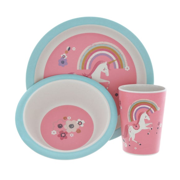 Kids Unicorn Bamboo Dinner Set 26cm X 22cm X 9cm Pink Matalan