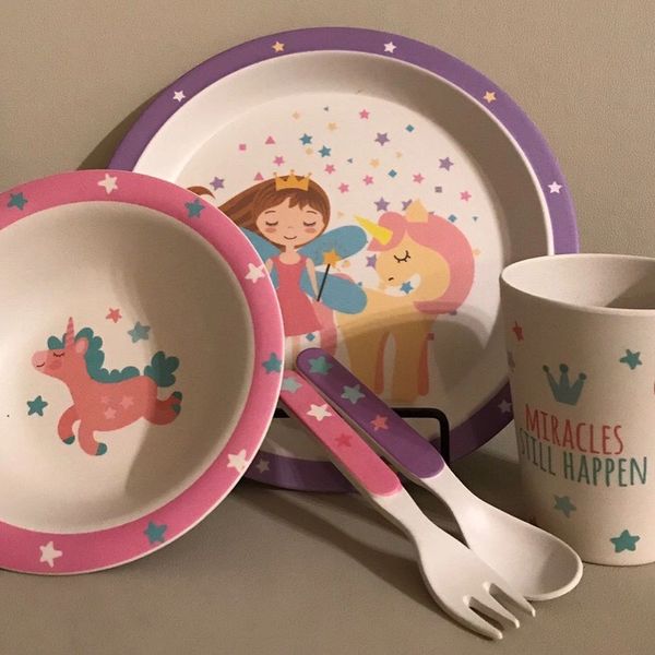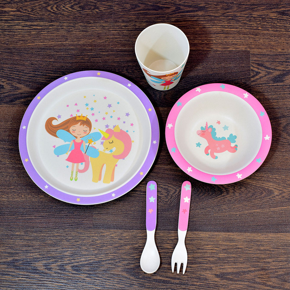 5 Piece Unicorn Bamboo Kids Dinner Set