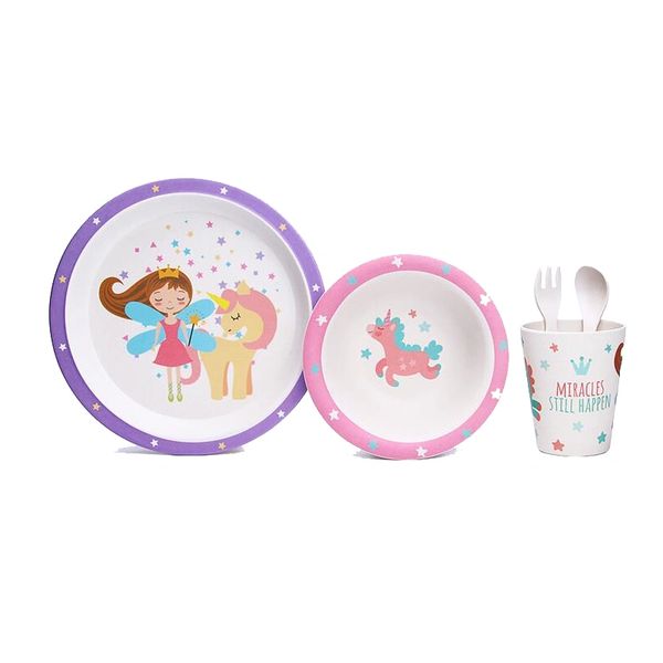 Unicorns Design 5pc Bamboo Dinner Set For Children