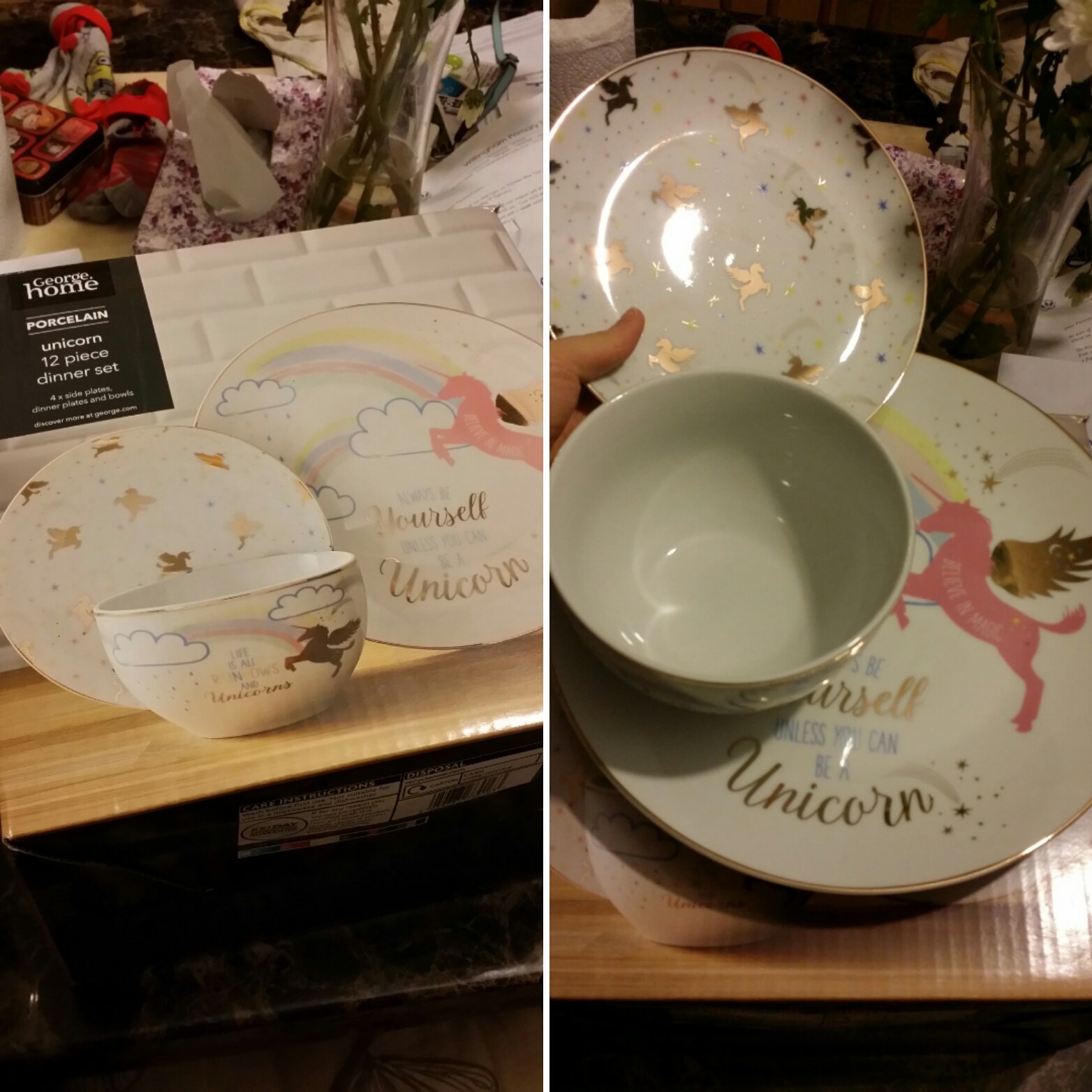 Unicorn 12 Piece Dinner Set Home George Unicorn Glitter