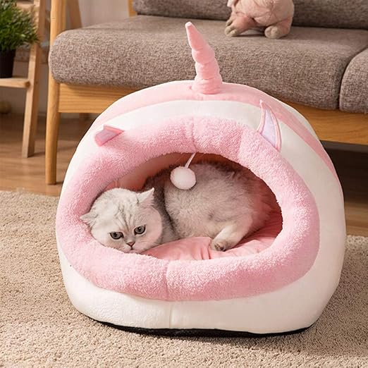 Unicorn Cat Dog Bed Cave Kennel Warm Winter Igloo House Small