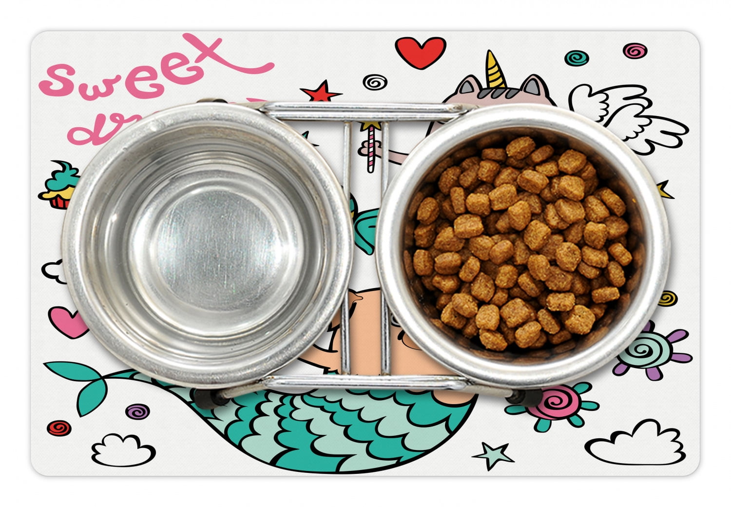 Ambesonne Unicorn Cat Pet Mat For Food And Water Pug Mermaid