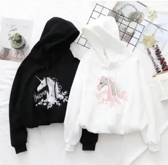 Sweater Crop Top Unicorn Hodie Wanita Shopee Indonesia