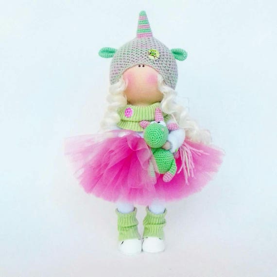 Tilda Doll Handmade Doll Unicorn Doll Textile Doll Green Doll Etsy