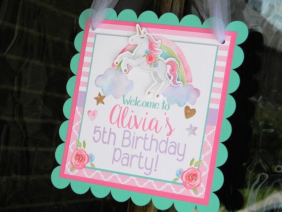 Partyplane Birthday Party Welcome Banner Unicorn Theme Door Hanger Unicorn Party Supplies Unicorn Birthday Party