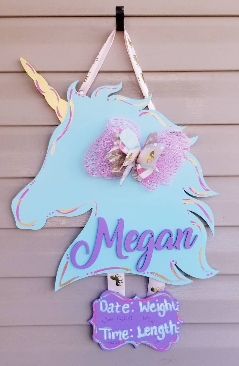 Unicorn Decorations Unicorn Door Hanger Unicorn Birth Etsy