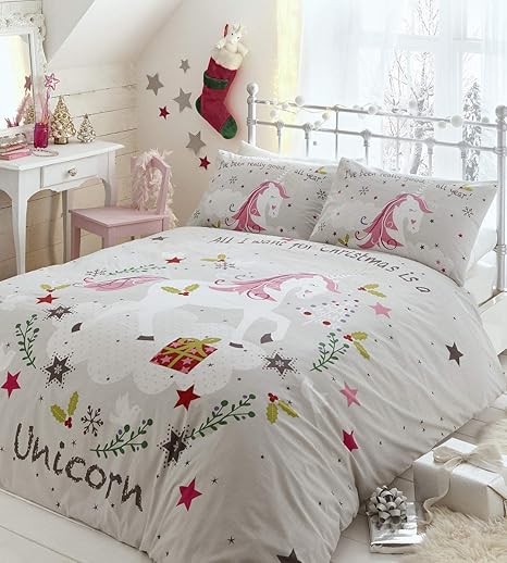 Portfolio Unicorns Christmas Kids Duvet Cover Bed Set Polycotton