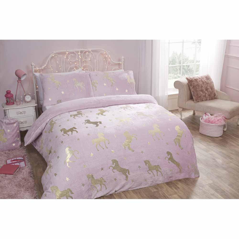 Sleepdown Blush Fleece Unicorn Double Duvet Set Wilko