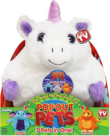 Amazon Com Pop Out Pets Fantasy Reversible Plush Toy Get 3 Stuffed Animals In One Unicorn Dragon Phoenix 8 In