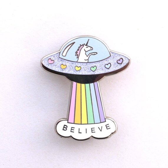 Believe Glitter Hard Enamel Pin Unicorn Spaceship With Etsy
