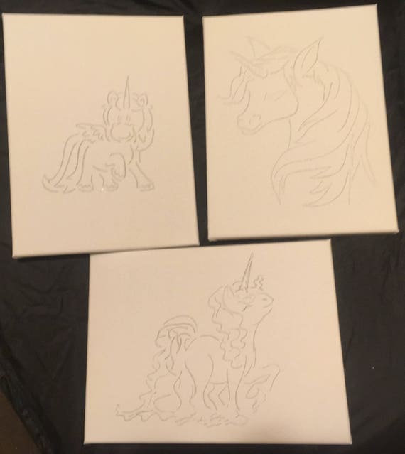 Unicorn Canvas Unicorn Canvas Drawings To Paint Or Colour Etsy