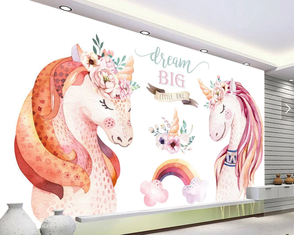 Papel De Parede Watercolor Unicorn Flower 3d Wallpaper Mural