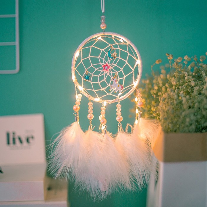 Creative Fairy Unicorn Dream Catcher Girl Diy Lamp String Feather