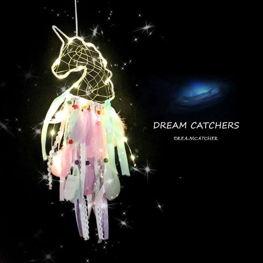 1 Pc Fairy Unicorn Dream Catcher Diy Night Light String Feather