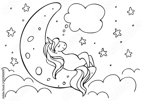 Unicorn Dreams On Moon Isolated On Stock Vector Royalty Free