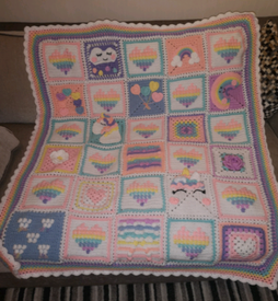 Crochet Small Rainbow Square Unicorn Dreams Blanket Cal