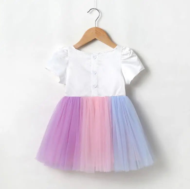 Retail Summer Baby Girls Cartoon Unicorn Mesh Dress Princess Kids