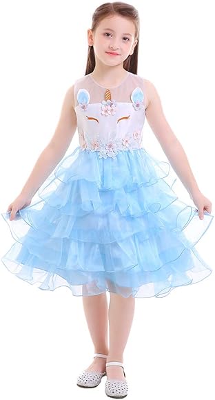 Amzbarley Girls Unicorn Dress Princess Sleeveless Evening Party