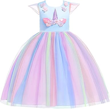 Nnjxd Girls Unicorn Tulle Rainbow Birthday Cosplay Party Fancy
