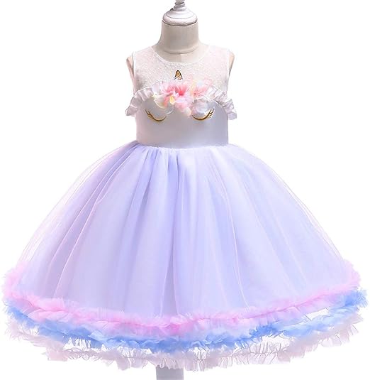 Little Girls Princess Unicorn Dress Fancy Costume Sleeveless Tutu