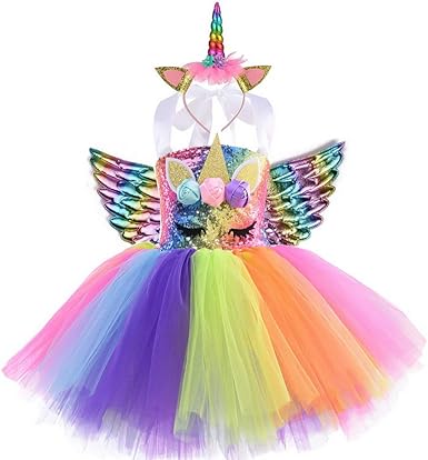 Z Yql Girls Unicorn Costumes Outfit Rainbow Tutu Dress With