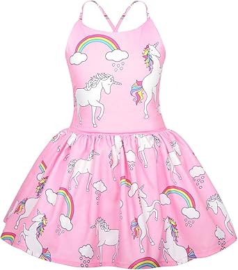 Jurebecia Unicorn Dress For Girls Cross Back Strappy Sleeveless