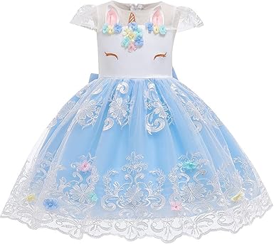 Fymnsi Flower Girl Unicorn Dress Kids Baby Birthday Princess Dress