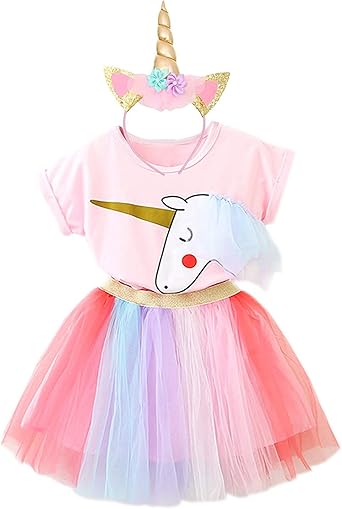 Amzbarley 2pcs Unicorn Tulle Tutu Dress Halloween Dressing Up