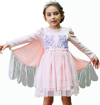 Girls Unicorn Tutu Dress Costumes With Removable Angel Wings Pink