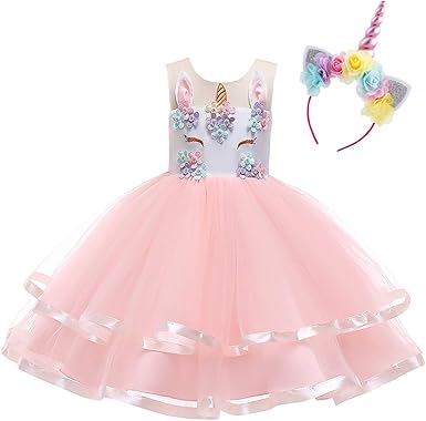 Iwemek Flower Girls Unicorn Dress With Headband Birthday Party