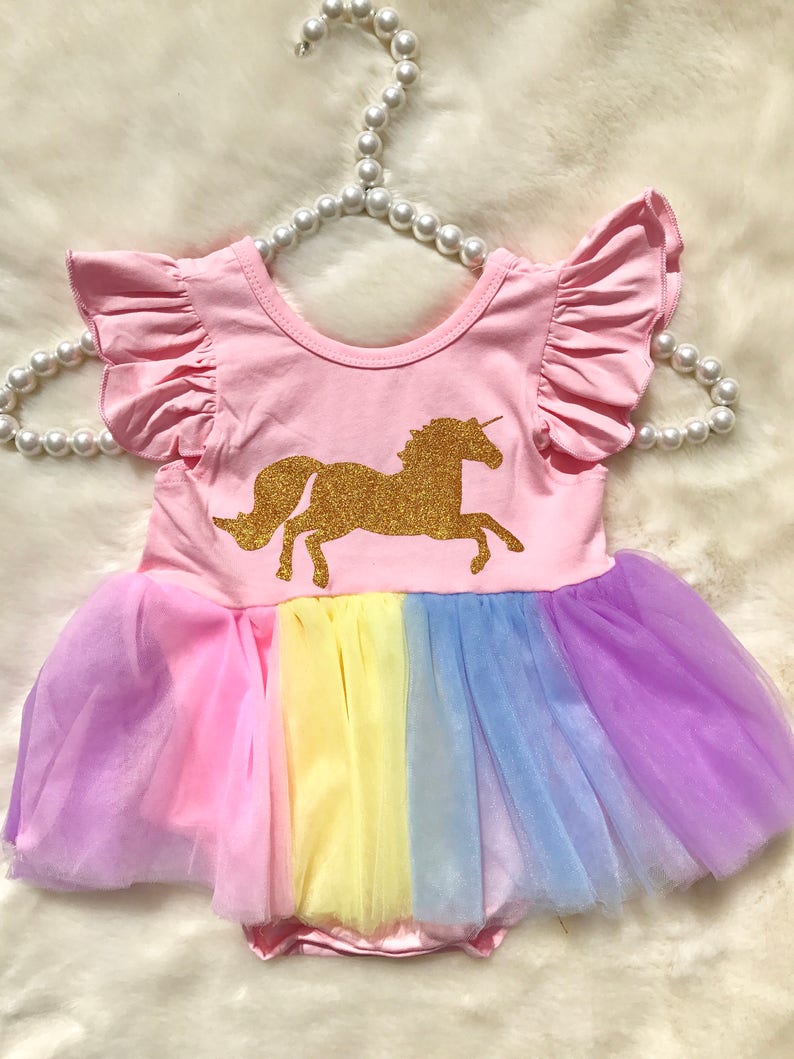 Whimsy Unicorn Dress Sparkle Romper Pastel Tutu Birthday Outfit