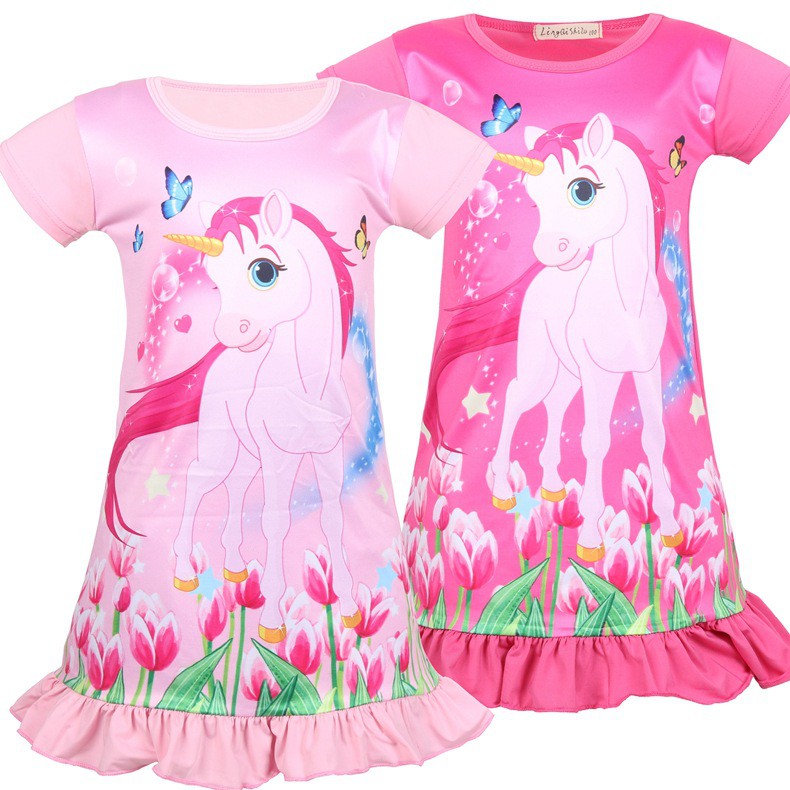 Childrens clothing new unicorn summer childrens dress girls princess dress cotton dress wedding dress elecool.