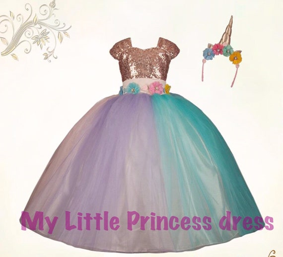 Girls Unicorn Dress Costume Princess Pastel Sequins Kids Unicorn