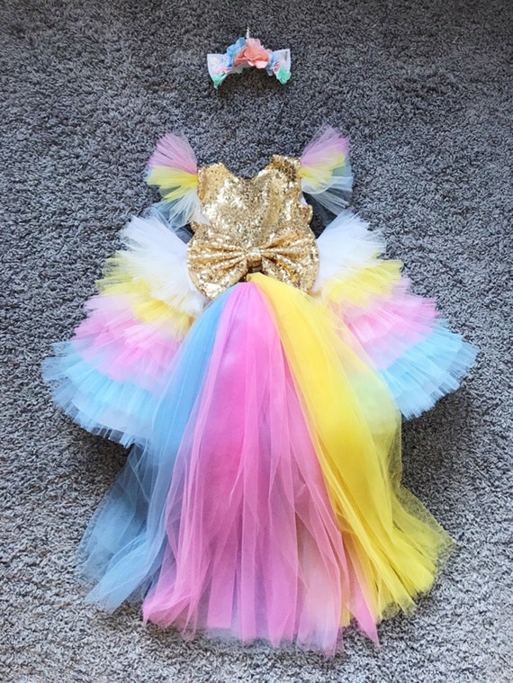 Unicorn Rainbow Birthday Dress Girls Infant 1st Birthday Etsy