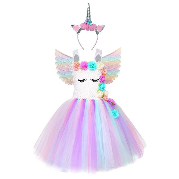 Baby Fairy Unicorn Dress Wings Candy Costume Kids Toddler Outfit