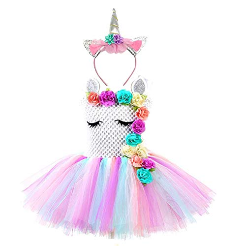 Girls Birthday Party Unicorn Dress Costumes With Flower Plus Size