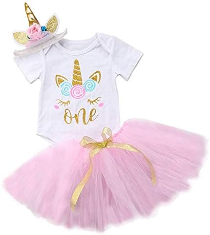 3pcs Newborn Baby Girls Unicorn Romper Tutu Skirt Dress Headband
