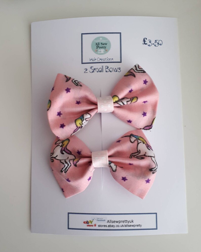 Two Small 2x3 Hair Bows Pink Unicorn Rainbow Etsy