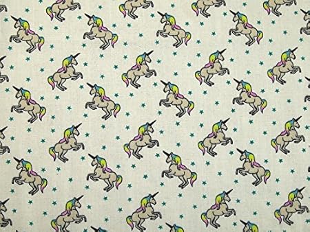 Unicorn Print Polycotton Dress Fabric Cream Per Metre Amazon Co