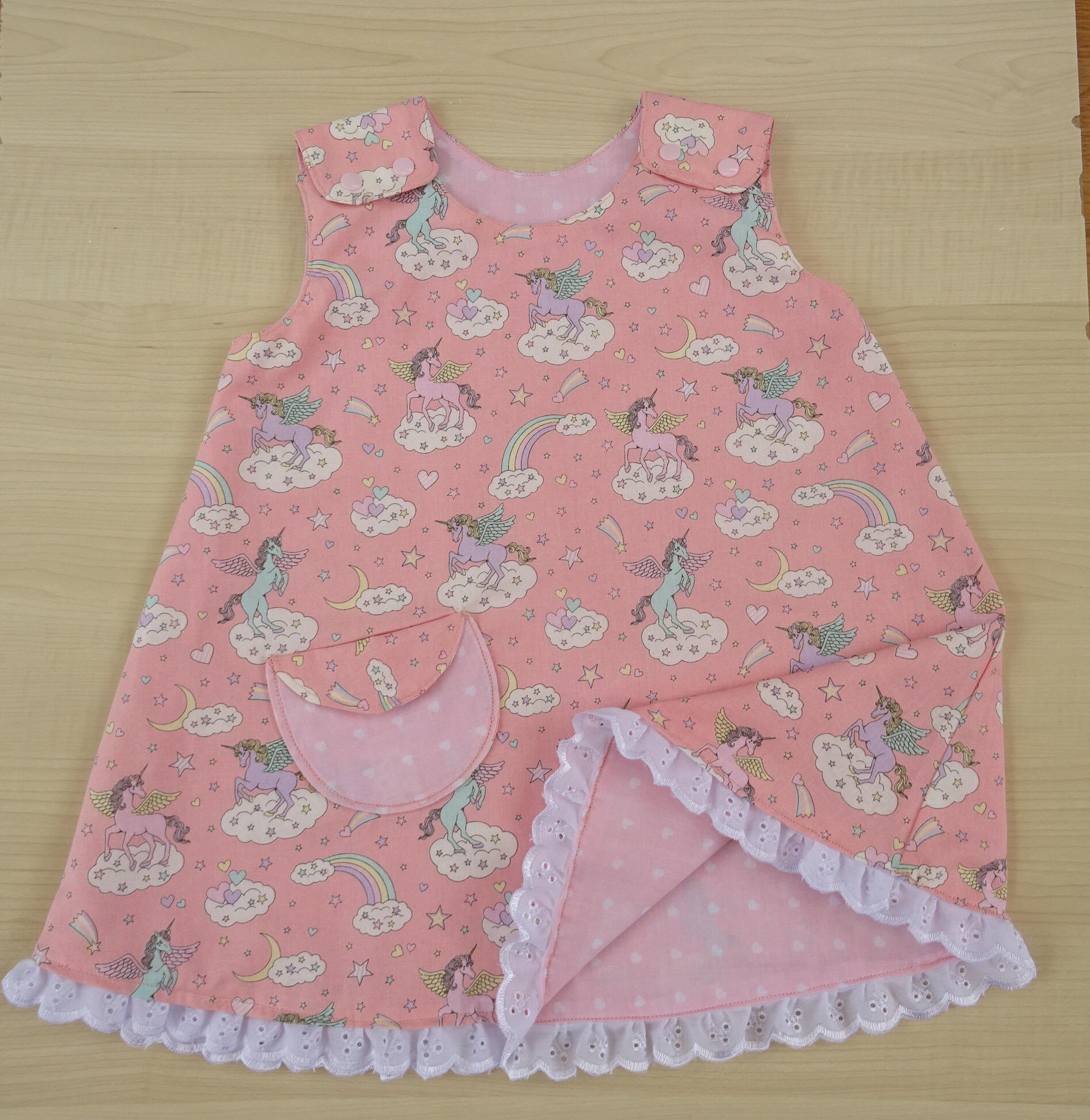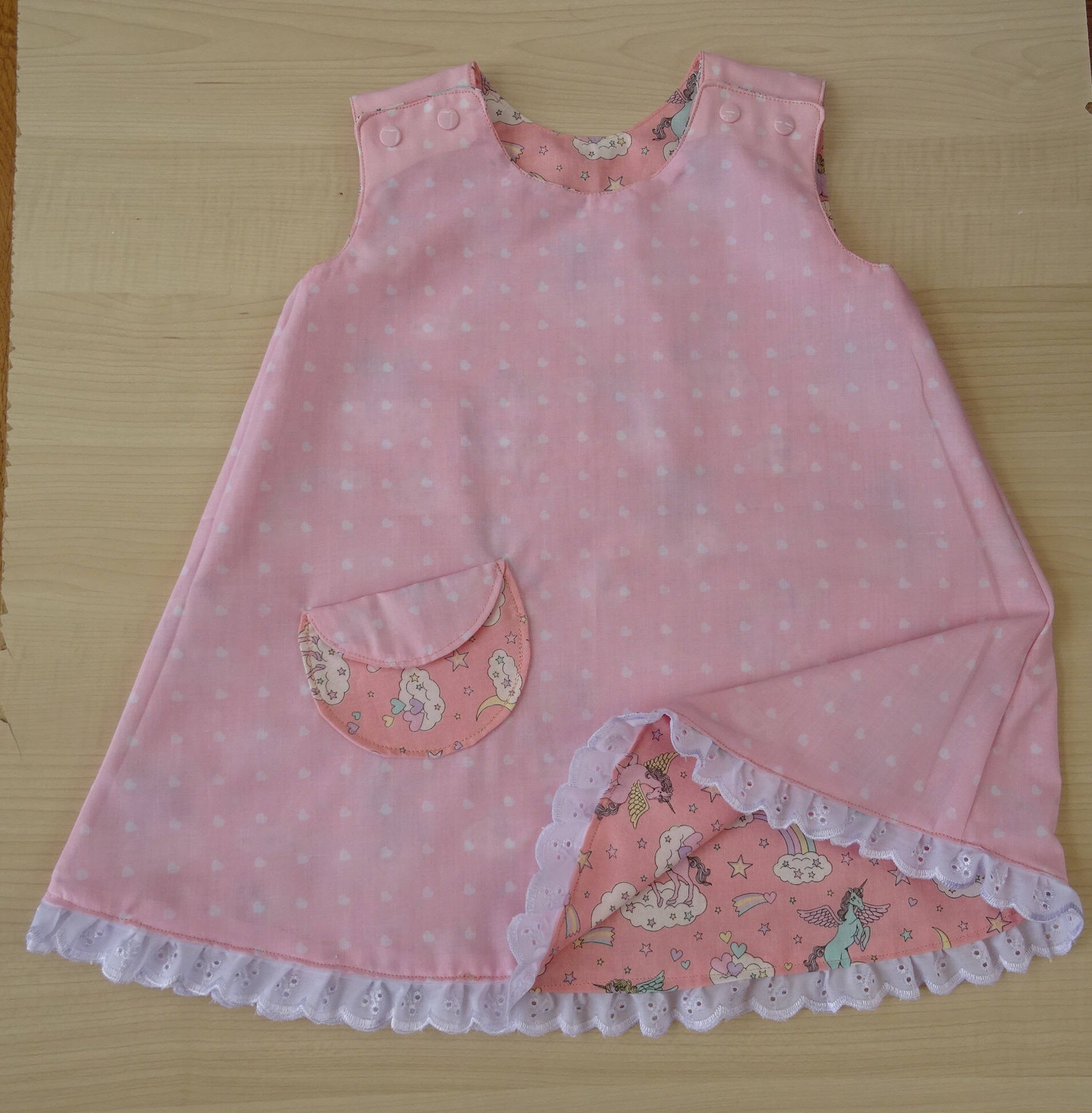 Reversible Unicorn Girl S Dress A Line 1 To 2 Yrs Pink And White