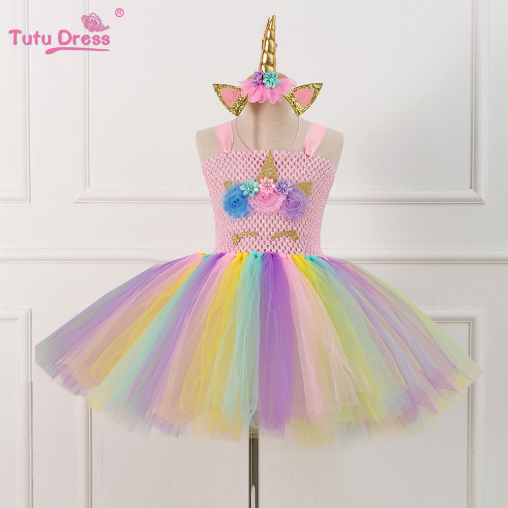 Unicorn Theme Party Girls Tutu Dress With Headband Kids Unicorn