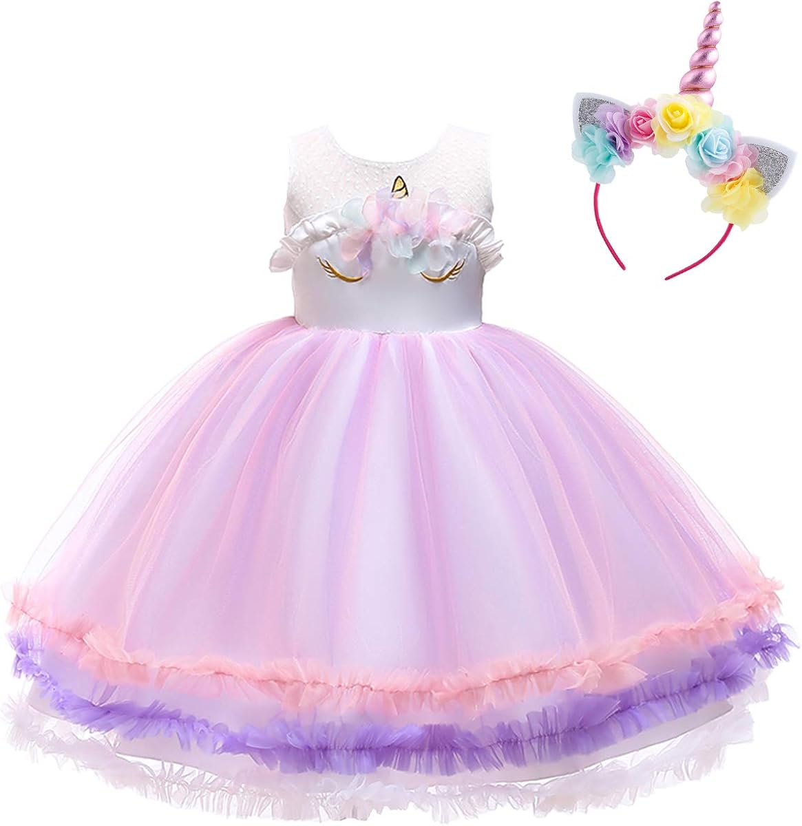 Unicorn Dress Flower Girls Costume Princess Dress With Headband