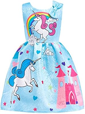 Lito Angels Little Girls Rainbow Unicorn Dresses Costume Fancy Dress Up Outfit Halloween Party Size 3 4 Years Blue B