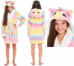 Unicorn Dressing Gown Girls Fleece Children Hood Rainbow Novelty