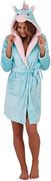 Ladies Womens Fleece Dressing Gown Soft Robe Unicorn L Hooded Cosy