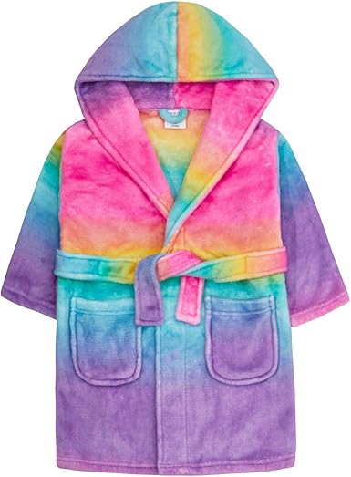 Girls Bright Rainbow Unicorn Cosy Fleece 3d Novelty Hood Bath Robe