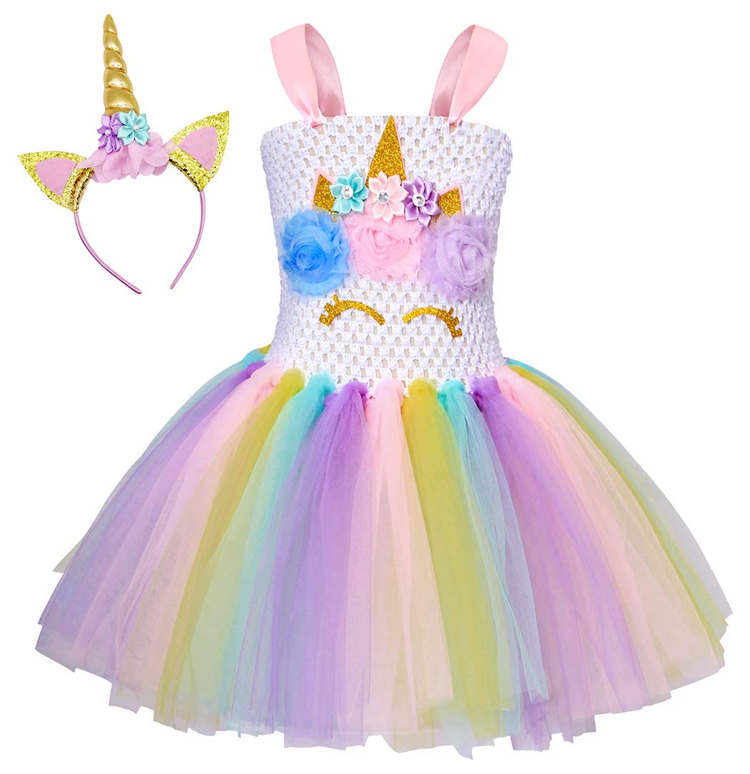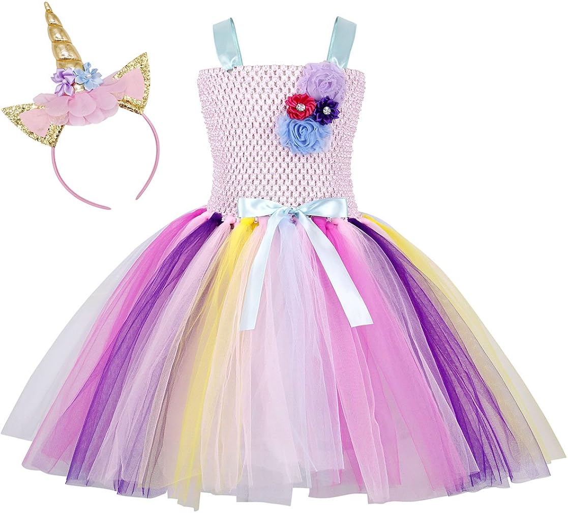 Amzbarley 2pcs Unicorn Tulle Tutu Dress Halloween Dressing Up