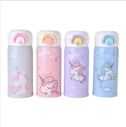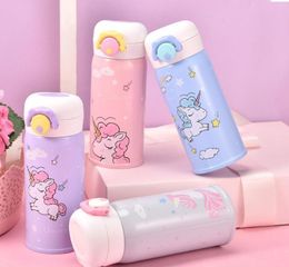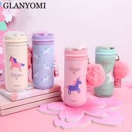 280ml Cute Cartoon Unicorn Glass Water Bottle Girls Straw Drink