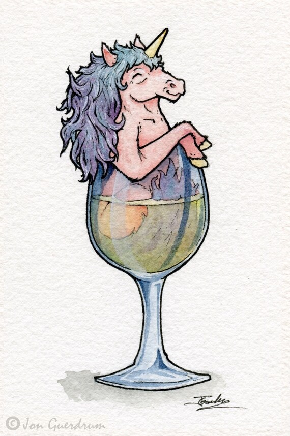 Magical Unicorn White Wine Drinking Buddy Art Print Etsy