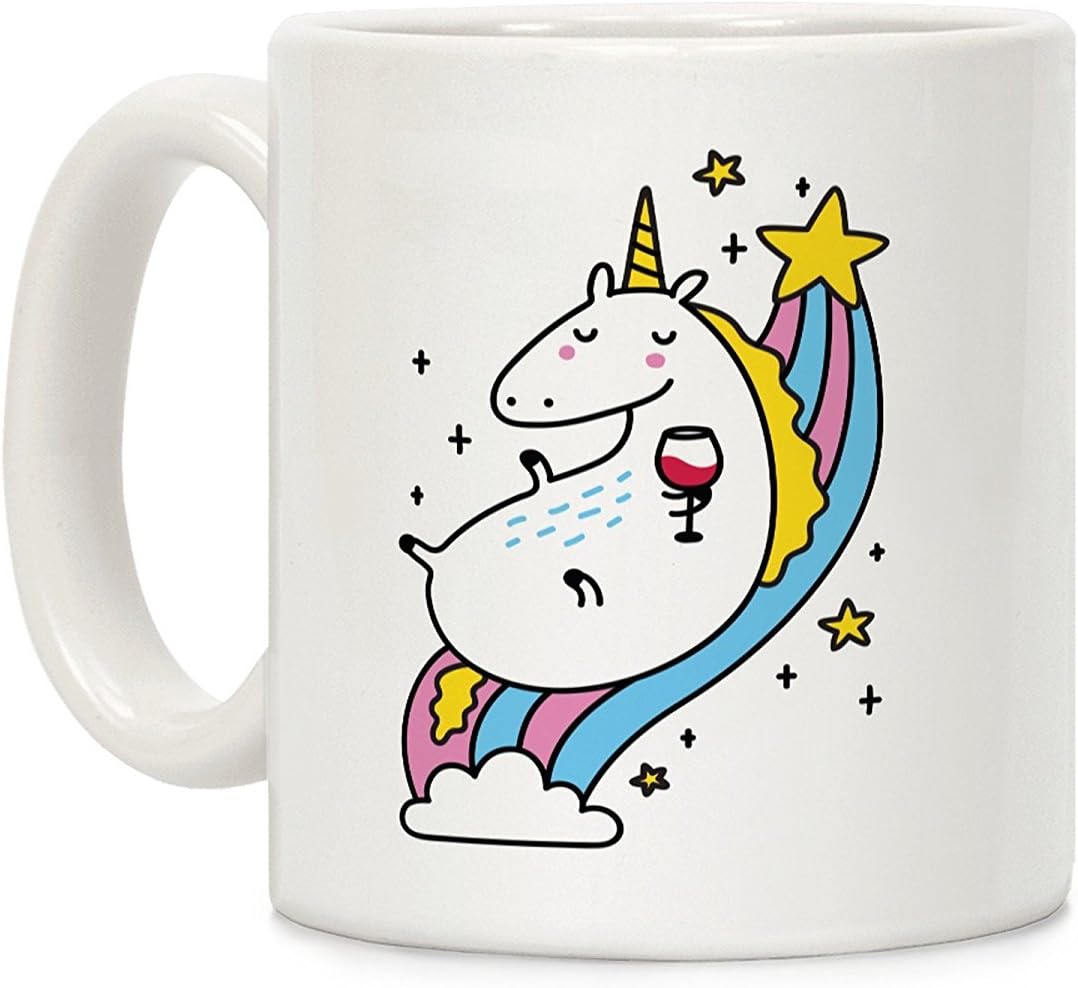 Unicorn Drinking Wine On Rainbow Coffee Mugs Lookhuman Wine